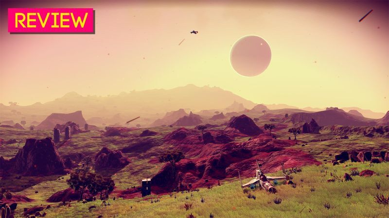 It is difficult to separate No Man’s Sky: The Video Game from No Man’s Sky: The Great Hype Experience. It’s not impossible, however, so: No Man’s Sky is a first-person game about looking at pretty things and crafting jet fuel. It starts with a straightforward crafting grind—break ten rocks to make four metal sheets to craft one shield upgrade, etc.— and sets it against an endless, procedurally generated universe full of procedurally generated planets. You get in your spaceship and travel from place to place in search of materials to make more fuel and trade for a better spaceship so you can carry more materials and make more fuel and trade for an even better spaceship and on, and on.
