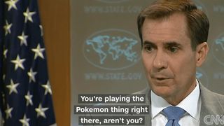 CNN reports that the unidentified culprit was busted by Kirby mid-talk, interrupting his terrorism briefing to say “You’re playing the Pokemon thing right there, aren’t you.”