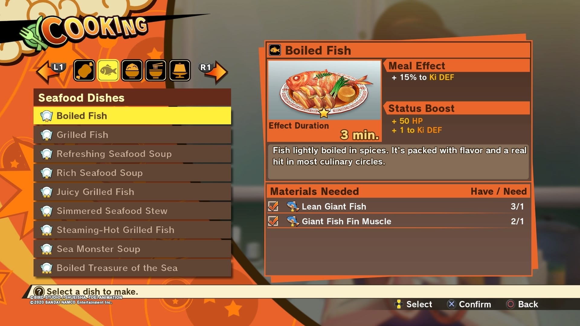 Kakarot begins with Goku and his son out on a morning stroll through the woods. After Goku completes a short image training fight against Piccolo during his meditation, the game switches from a 3D real-time action fight to a small open area where he can run around. Spaces like these where Goku (or whichever other character the player happens to be controlling) can explore, collect food and items, and even get into fights with other enemies, are the core of what is supposed to make Kakarot feel like an RPG. Rather than move from cutscene to fight and back to cutscene again as in past games, this wandering around offers opportunities for grinding, doing side-quests, and experimenting with things like fishing and cooking.