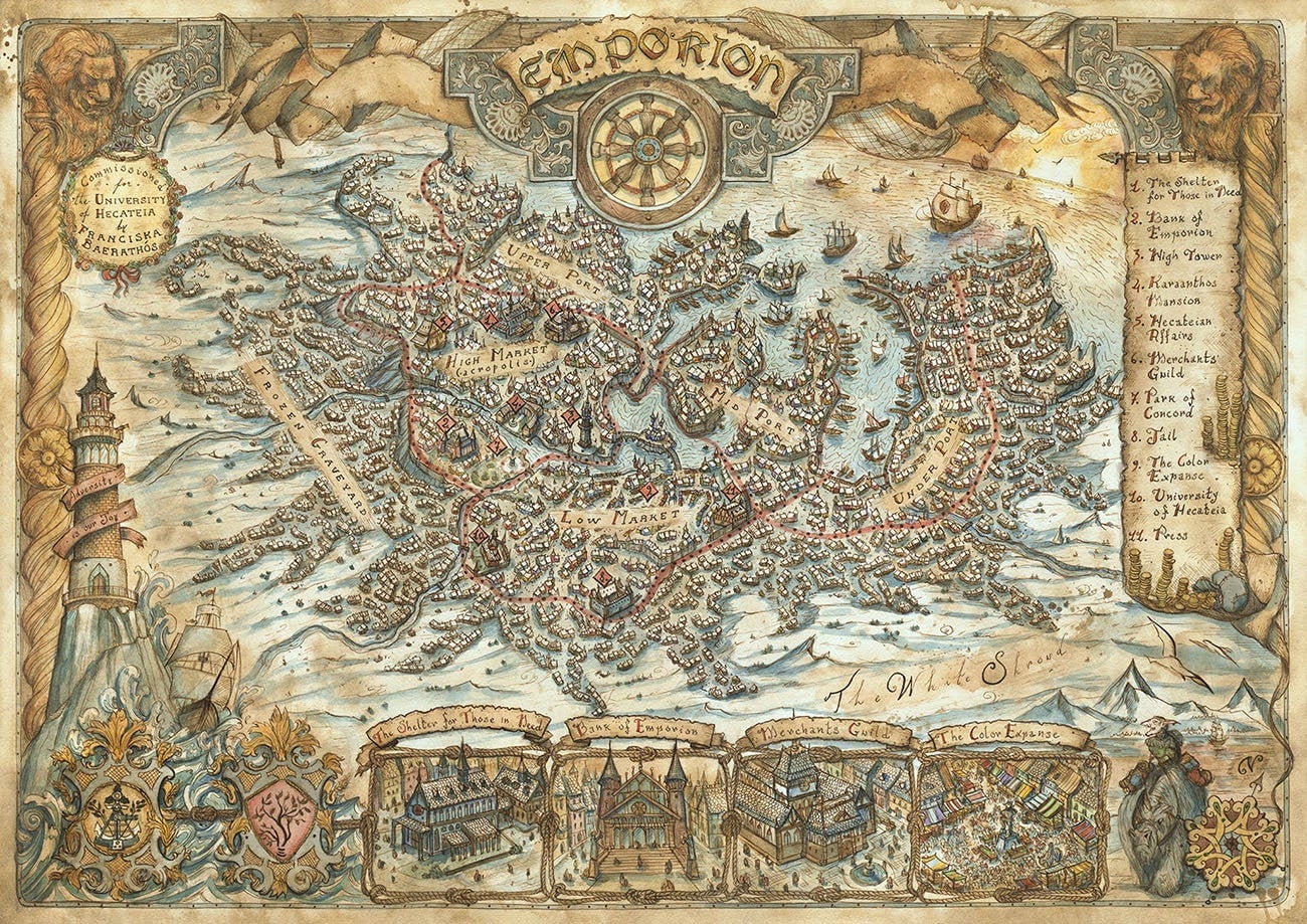 We’ve got a very cool feature for tonight’s Fine Art: the work of Francesca Baerald, an Italian artist who has drawn gorgeous fantasy maps for companies like Square Enix, Fantasy Flight, Games Workshop and Dark Horse.