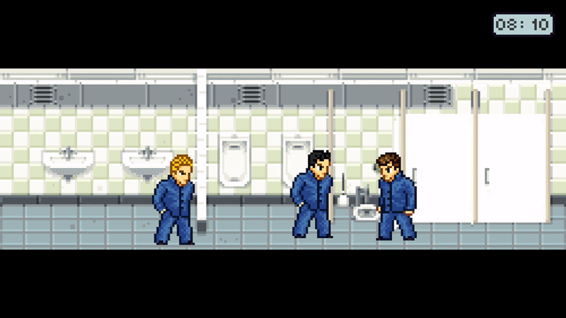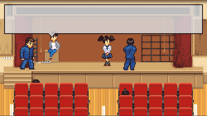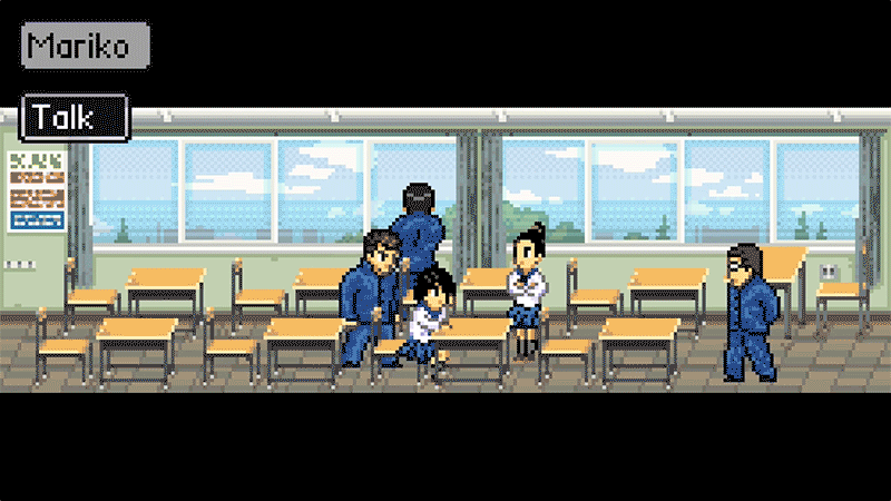 The texture of literature studs the surface of this, a Kunio-Kun-inspired minimalist life-sim with crunchy brawler mechanics, immediately and forever after you consider that you can assemble a posse after school and then press down on the d-pad while holding the A button to hunker down simply for the graphical effect of it, and to know that your character is wasting precious in-game time he could be using to study, get his grades up, and avoid expulsion. Then, the magic happens: your boys all hunker down right next to you. One of them lights a cigarette. Now you’re all literally smoking in the boys’ room after class.