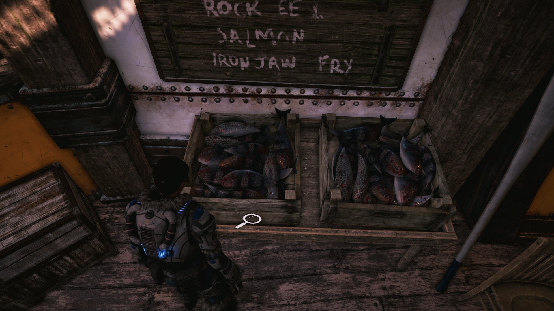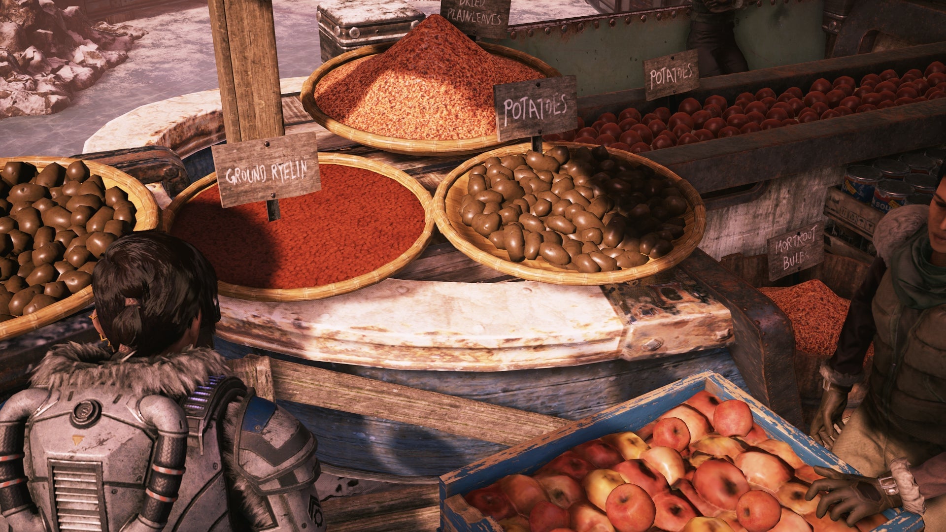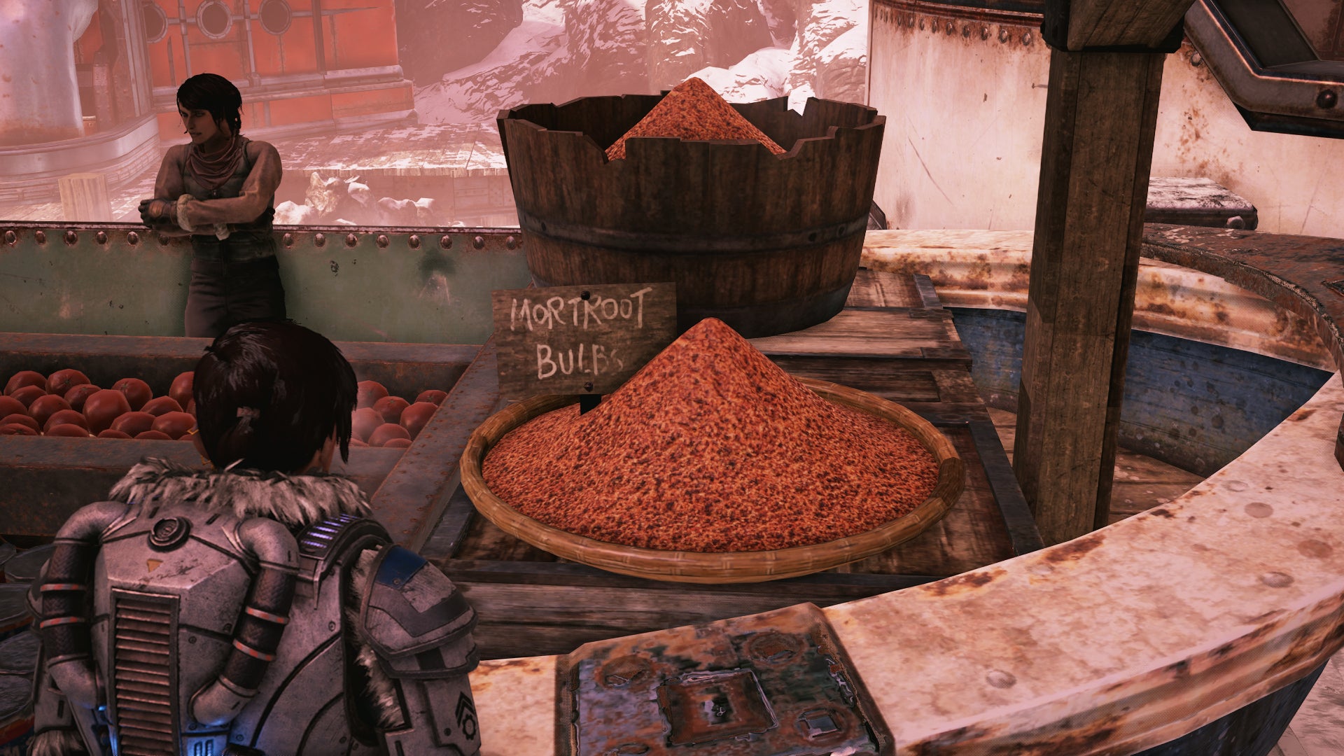 As it turns out, Gears 5 is filled with food. I spent a large chunk of time exploring each area, looking for a new meal or snack to photograph. And very often I would find some food tucked into a corner or laying on a table.