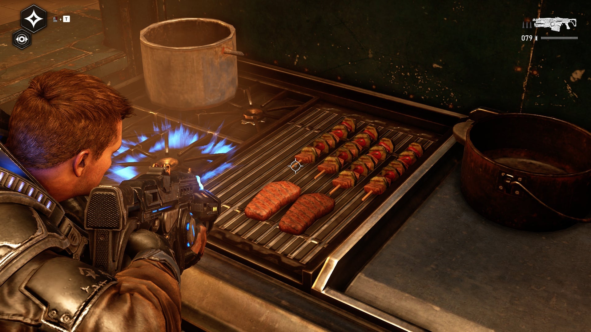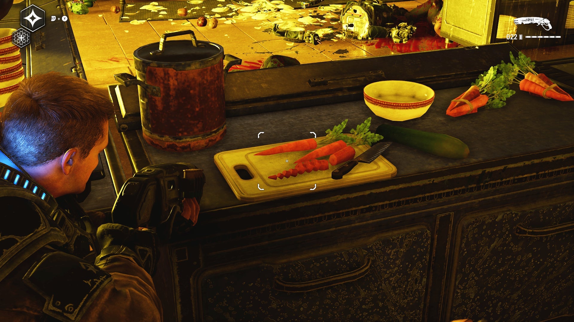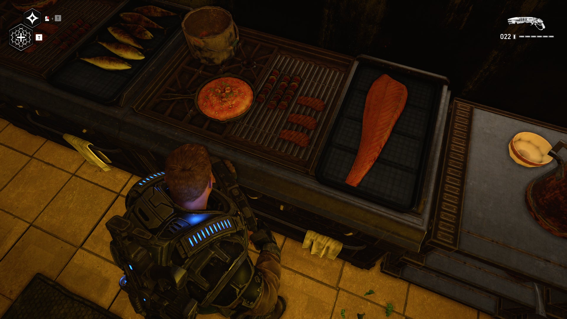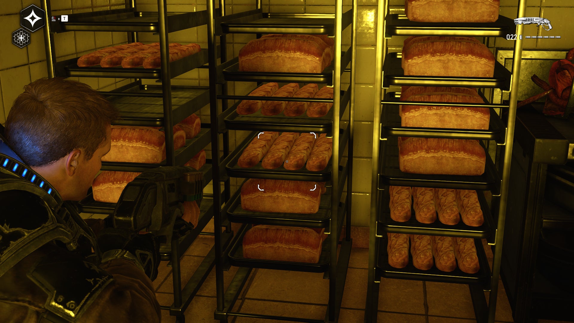 When you think of Gears of War, you probably have images of big dudes with chainsaw guns fighting giant creatures and monsters. And that is a part of Gears 5, for sure, but another thing you can find in the latest Gears of War game is not as violent or loud. Hidden throughout Gears 5 are plates, tables, and bags of tasty looking food and snacks.