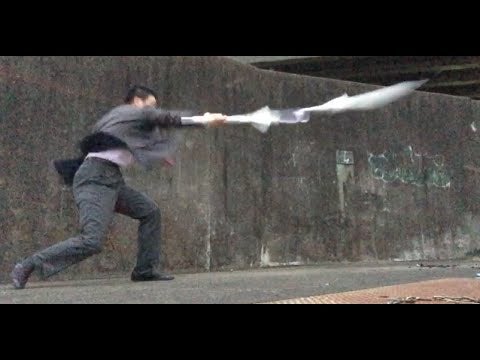 This is Hiroaki Tanaka. He likes to do martial arts with umbrellas while wearing a suit. I think he’s badass. He doesn’t always use umbrellas. Here he is fighting with a broom. Fans. Shirts on hangers. And finally, glow sticks. Kotaku East is your slice of Asian internet culture, bringing you the latest talking points…