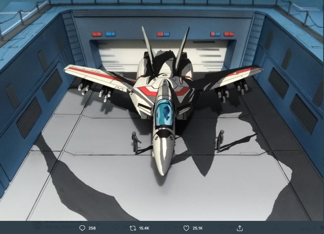 Twitter user Annkoromoti makes incredible models, bringing them to life in anime-like dioramas. Pictured is a Valkyrie from the Macross anime—a model with a cell-shaded paint job. Have look! Amazing, no? Here is how it compares to an anime still: This is truly great. A close-up look really shows the detail: We’ve previously seen other…
