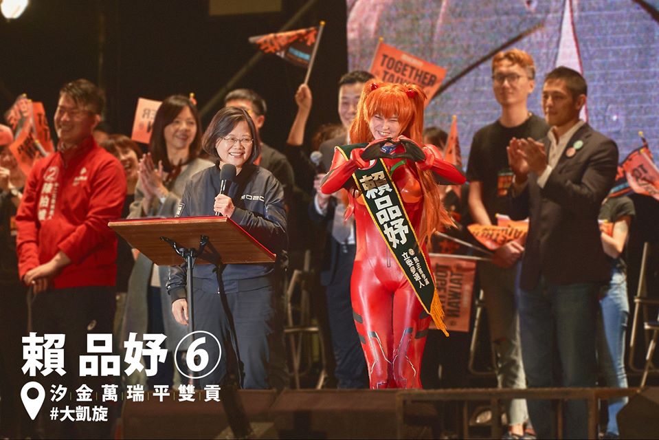 How many politicians can say they’ve cosplayed as Asuka from Neon Genesis Evangelion? Lai Pin-yu sure can. The 27-year-old Democratic Progressive Party candidate won a tight race in New Taipei City’s 12th District over the weekend. Taiwan News reports that Lai defeated former Taipei City Deputy Mayor Lee Yong-ping by 2,780 votes. Maybe a rally…