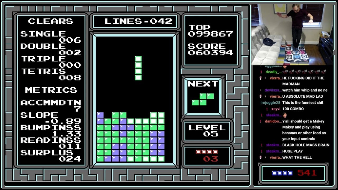 Sometimes it’s all about having the right tool for the job. On a recent Twitch stream, Tetris champion Jonas Neubauer decided to hell with that wisdom and tried to play the 30-year-old NES game using only the arrows on a DDR mat. It went well for a little bit. Starting on level five, Neubauer, who’s…