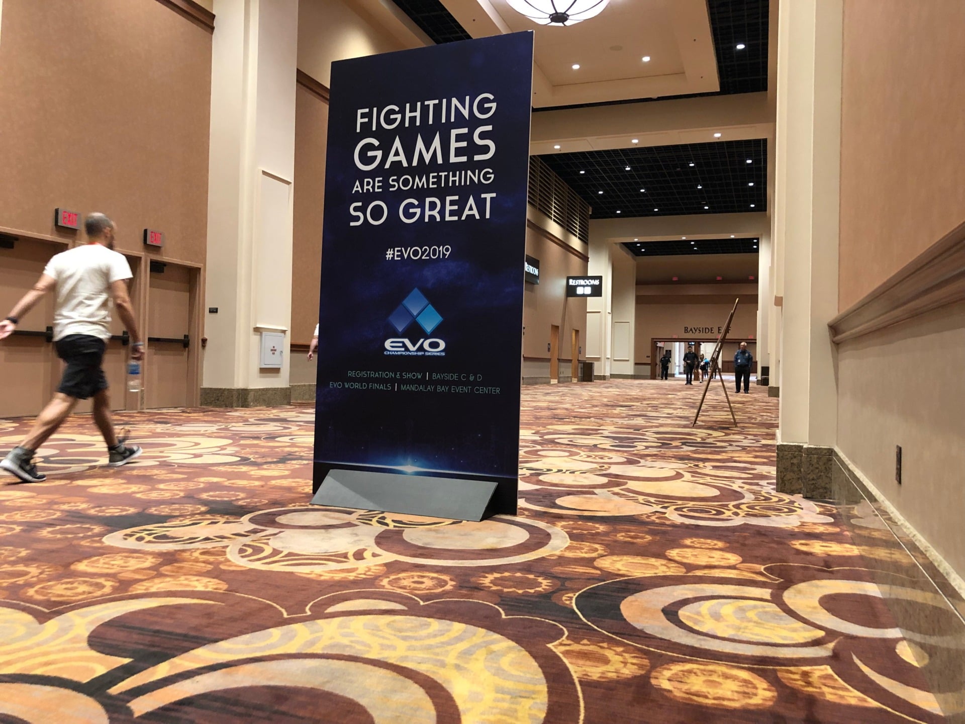 In addition to hardcore competition, Evo 2019 has also provided a decent chunk of floor space for independent developers to show off their games. Flaming Flamingo took advantage of this opportunity to demonstrate its upcoming game, Hot Shot Burn, in a simulated living room environment, complete with an extra-large couch for attendees to lounge on…