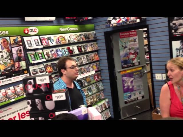 Like, this gets so uncomfortable it’s tough to watch. This footage was captured at a GTA V launch event, where the gentleman in blue & black ran into some difficulties picking up his copy. By the time the video starts, he seems to have had his problem sorted but, but between him leaving in a…