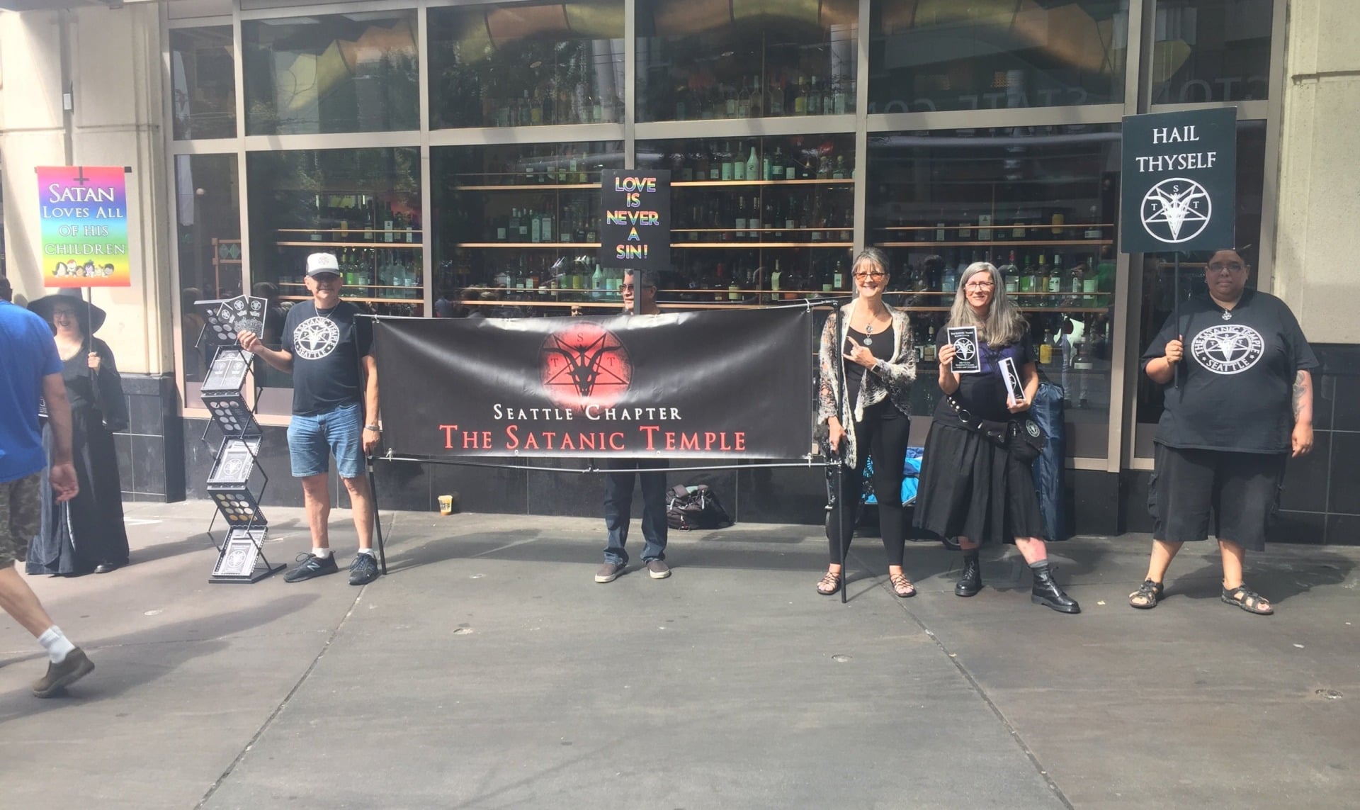 Sighted outside PAX West: Satanists. The Seattle chapter of the Satanic Temple was looking for new recruits outside the Seattle-based convention earlier today, bearing signs with phrases like “Love thyself” and “Love is never a sin.” I was surprised to see them orbiting PAX until I remembered that Satanists love video games. I do not,…