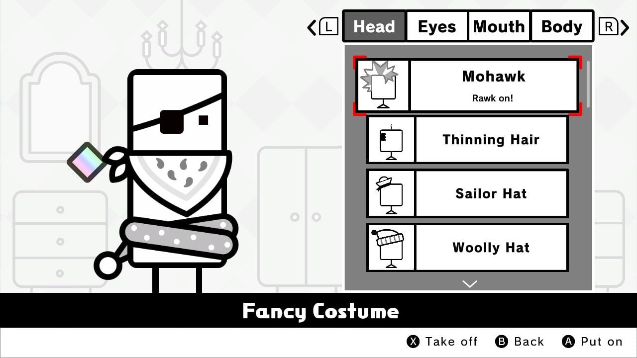 One largely positive complication of the series’ formula change: instead of simply unlocking alternate BoxBoy looks, you’ll draw them from a seemingly-randomized cosmetic loot dispenser, which serves the greater good of giving players a ton of head/eyes/hat/body customization options. You can dress up the game’s playable characters in some very silly ways.