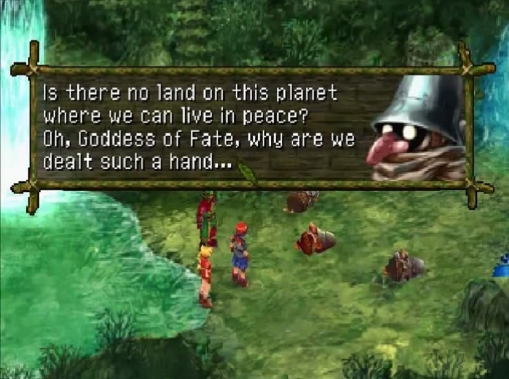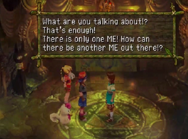 I think one of the aspects I didnât like the first time through Chrono Cross was that I didnât feel the characters were as rich or interesting as the ones in Chrono Trigger. The team behind Chrono Cross originally wanted every character in the world to be recruitable and have their own story. That proved to be too difficult to manage just by sheer scope. That eventually became 64 characters, each with a unique ending. That sum was decreased to 45 as were the number of endings to make it more manageable. Whatâs important to note is that Cross wasnât trying to recreate the closer, more intimate adventure of Trigger. Cross was about a huge cast of characters and the implications of their existence, how one death, or life, impacts the universe around them.