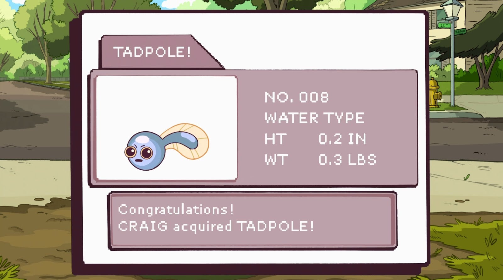 The episode ends with an exciting battle between the evolved tadpole and his nemesis, and Craig one step closer to being the very best Craig he can be, like no one ever was.
