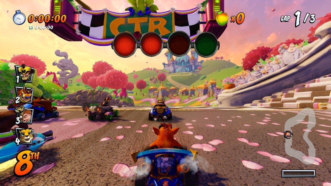 But hey, we didn’t have online multiplayer in the original Crash Nitro Kart. Back then we were lucky if we had analog sticks. Now we’ve got a slew of ridiculously colorful race tracks, dozens of rides to customize, and animalistic racers that are less polygonal and pointy and more soft and cuddly. If we have to wait 20 to 40 seconds to enjoy them, so be it.