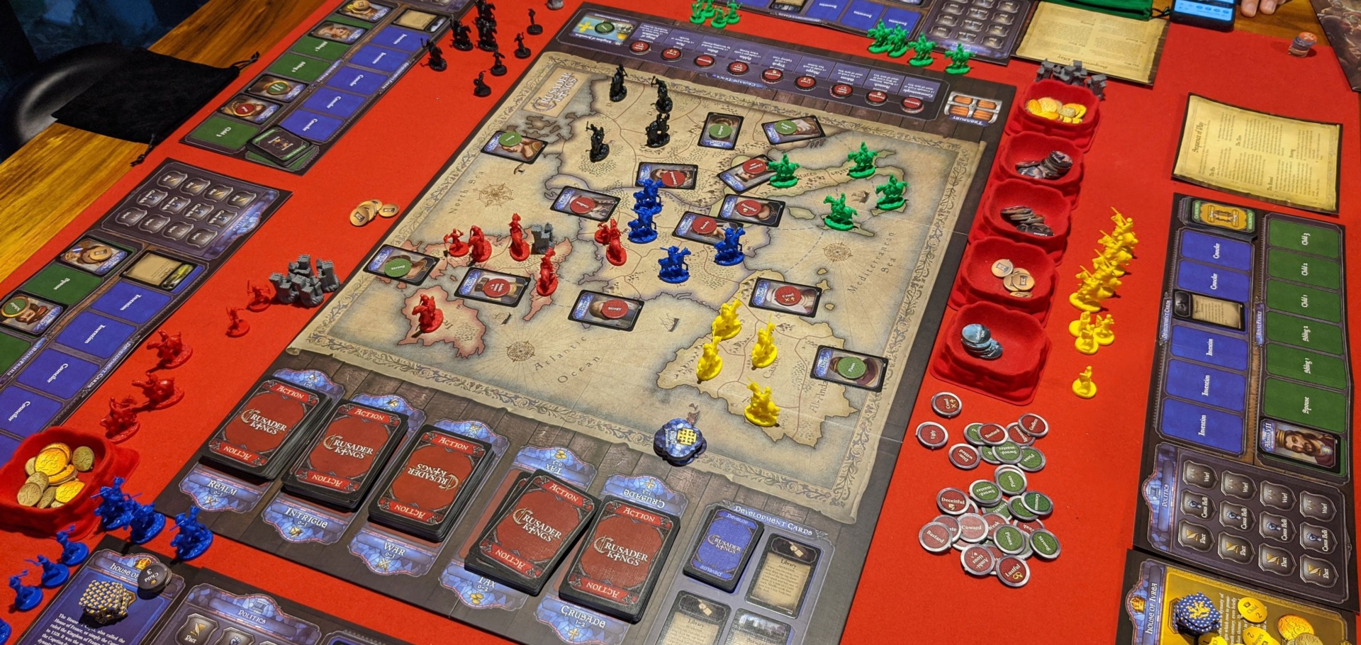 This is pretty similar to the laborious process involved in going to war in the video game, but that’s designed to be played over dozens of hours. The Crusader Kings board game is trying to keep things capped at 2-3 hours, which makes your limited amount of turns precious. Blowing multiple cards preparing then going to war just isn’t worth it when you can only hold a maximum of eight territories anyway, and there are plenty of nearby independent realms to conquer instead.