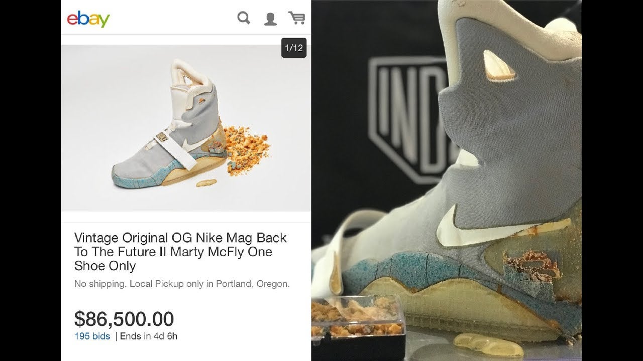Death comes for us all, but for iconic movie sneakers it comes a lot quicker. Currently up for auction on eBay is a single shoe (the left) of one of the pairs of Nike Air Mags used in the production of 1989’s Back to the Future II. Air Mags have been re-released by Nike a…