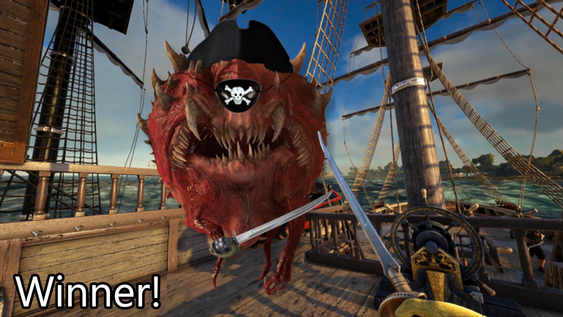 Last week, I asked you folks to create some pirate-themed images so we would be ready for today, which is Talk Like A Pirate Day. Sometimes I plan these things out! Our winning image this week comes from Richardrae1 who shows us why Doom’s demons are better off staying on Mars. Wait..just a second. *Clears…