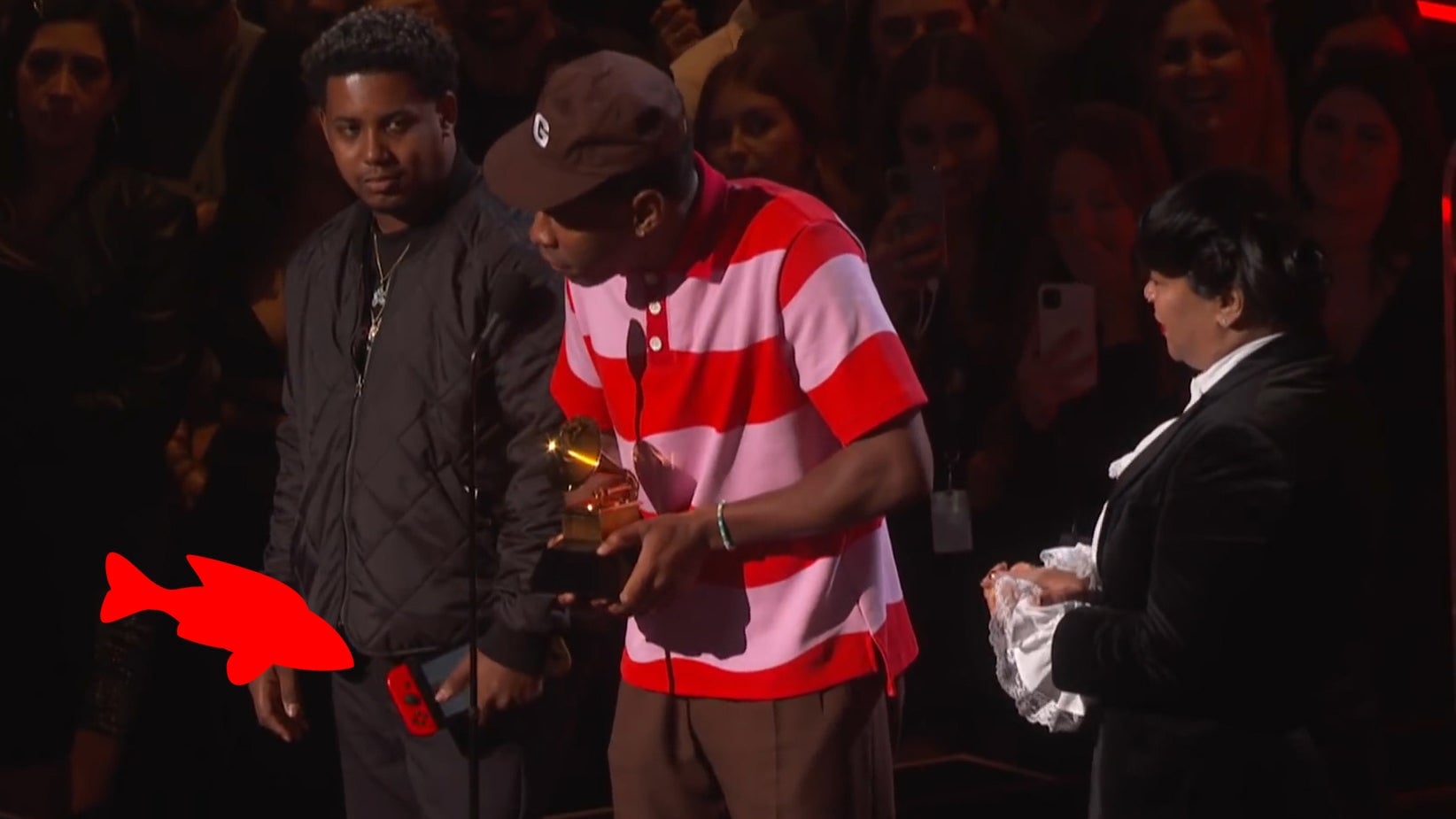 When Tyler the Creator accepted an award for Best Rap Album for Igor during last night’s 62nd annual Grammys, he was joined on stage by his mother, longtime friend and collaborator Jasper Dolphin, and Jasper’s Nintendo Switch. “I was playing Pokémon,” said Jasper on Twitter. Fair enough. It’s not like he could have just left it…