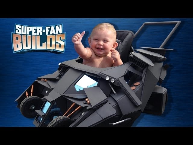 At least young Colin Earl won’t have to wait for a bat to come crashing through his window for vigilante inspiration — this custom-built Batmobile stroller should do the trick nicely.