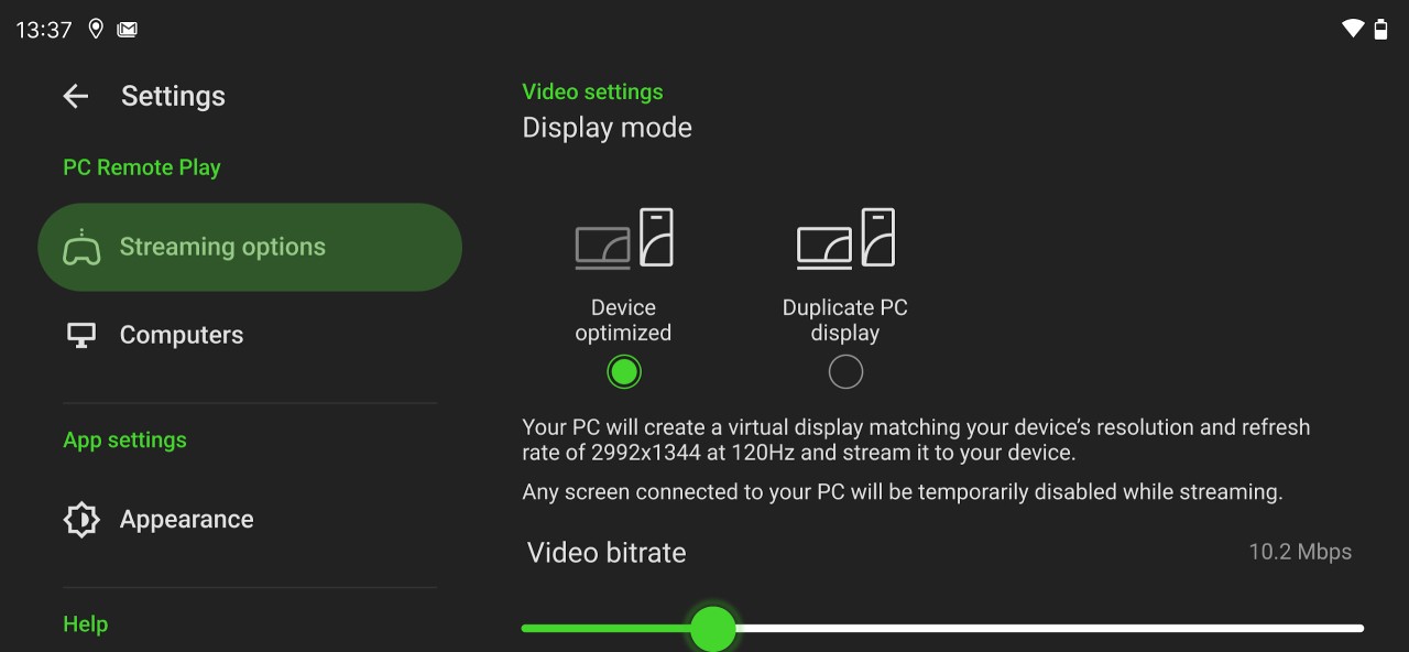 The idea is quite straightforward: you play the game on your PC, the visuals are shown on your mobile display, and you play it with a Razer Kishi controller, keyboard, and mouse, or anything that can be used on the device. The app will tune the stream to the screen resolution and refresh rate; therefore, you will not see an aspect ratio that is not correct. You always receive the finest the hardware can offer.