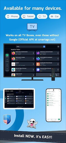 The application allows users to install applications in TV boxes, Fire TV, and Shield TV, thanks to Android TV support. Others support remote Wi-Fi installations, and therefore, the phone or browser can transfer files directly to the TV, making the setup easy.