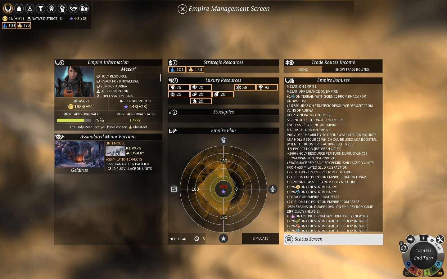 But Endless Legend excels in both these areas. The UI is crisp attractive and clear, split into a handful of sections that cover pretty much everything you need regularly, and a notification system keeps you up to date with everything thatās popping up and needs attention. Itās smart, too, with lots of little flourishes that are welcome in a game you could be spending hours in; to exit a menu, for example, you donāt need to find the āXā button, you just need to right-click anywhere and youāll be back at the world map.