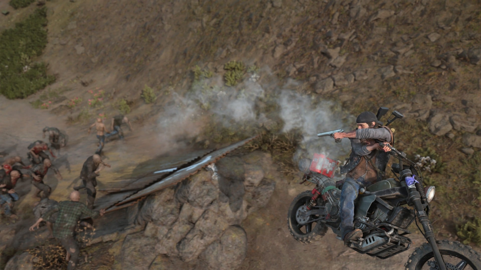 Playing Drifterâs Run reminds me of what bummed me out about Days Gone in the first place. In another open-world game, this would be the sort of thing that would be integrated into several side missionsâfun nonsense that just lets you toy around with the world and the tools you have to navigate it. But Days Gone is a grim story of survival that endeavors to remain tonally consistent, perhaps to a fault, since even here, in this nonsensical obstacle course isolated from the main game, there are stakes. Youâre delivering bandages to people that need them. Life-and-death stuff!