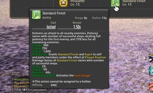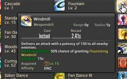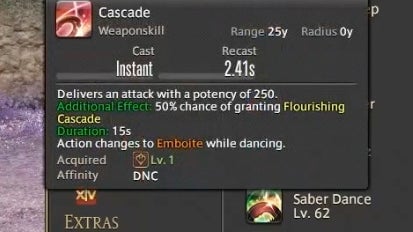 That’s already a lot to keep track of, but there’s one final meter that Dancers need to watch. Whenever a buffed player or teammate lands a weapon skill attack, it builds up resources in a small bar called the Esprit Gauge. Once the gauge reaches 50 or above, a powerful finishing attack becomes available. There’s also an ability called Improvisation that slowly builds the meter without the need to land attacks.