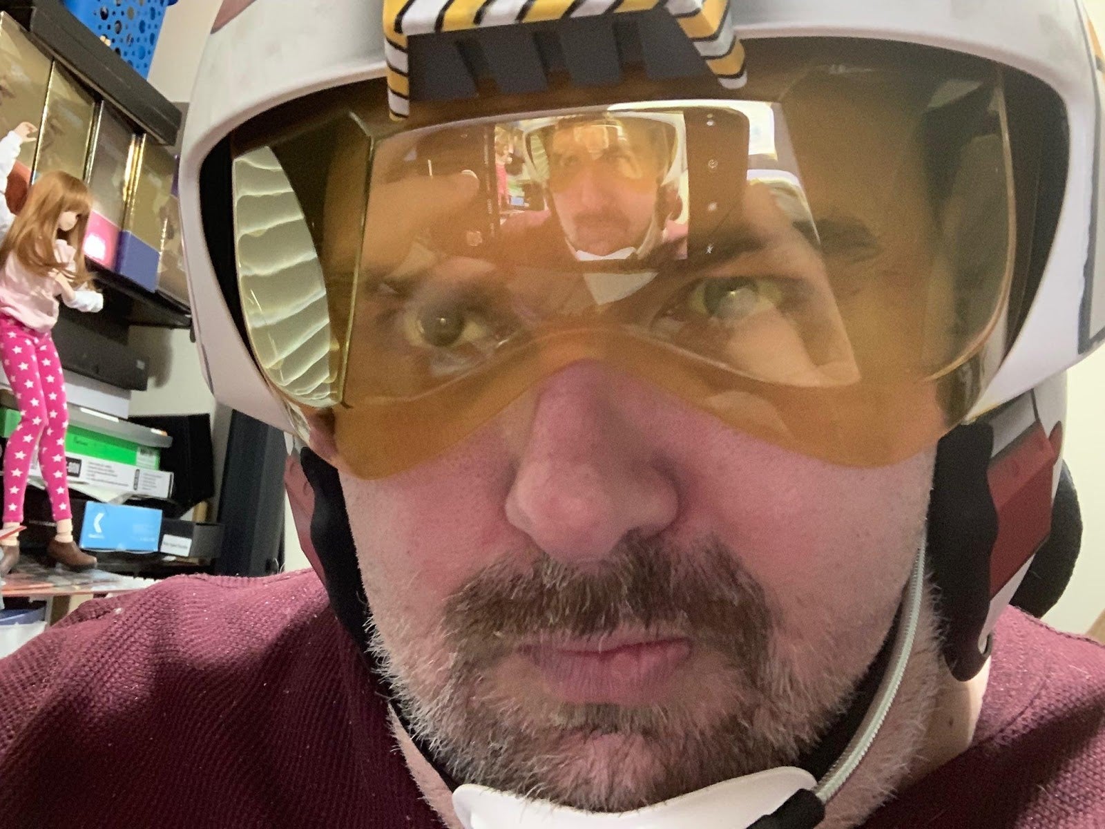 It looks amazing, especially on other people. It has lights and sounds. It even has a switch on it that swaps between Yavin and Hoth effects. It’s a movie-hopping helmet, and it’s my best friend.