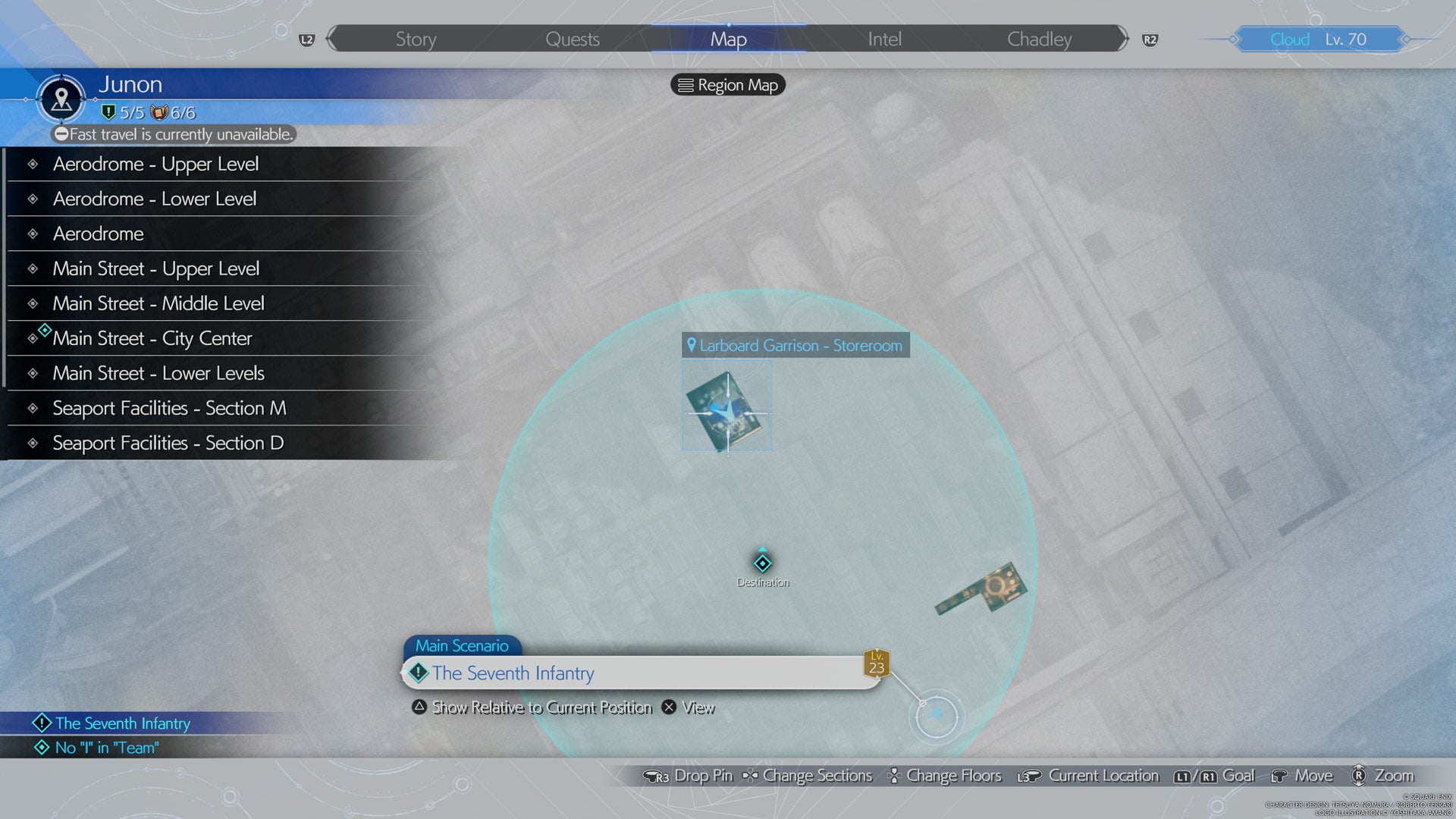 This location contains a nice reference to a strange collectible from the original Final Fantasy VII. Head down to the lower level of the Larboard Garrison and you’ll find a group of Seventh Infantry personnel standing around a table full of mini-soldiers…one might say, 1/35th scale.
