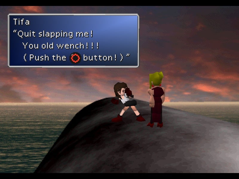 It’s too bad: The translation is so awful. If the English version of Final Fantasy VII had been written with as much care as, say, Final Fantasy IX a couple years later, it would hold up far better today.