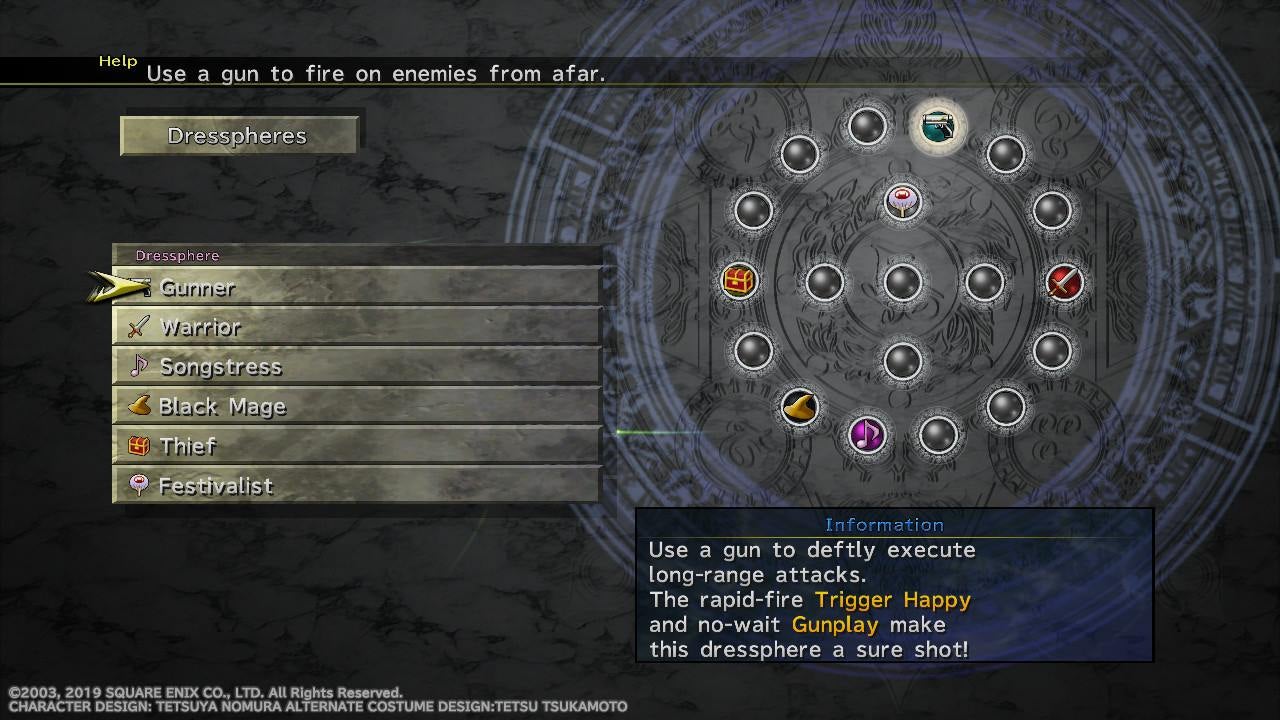 Years before Noctis and the lads took a road trip in Final Fantasy XV, Y.R.P. (their stage name) were kicking ass and changing clothes mid-battle. Harnessing the spirit of the series’ job change system, Final Fantasy X-2’s heroes change character classes in dramatic fashion. Over the course of their adventure the group collects dresspheres, bits of memory containing a job’s special skills and unique appearance. Once slotted onto a piece of equipment called a garment grid, these dresspheres can be swapped out during battles.