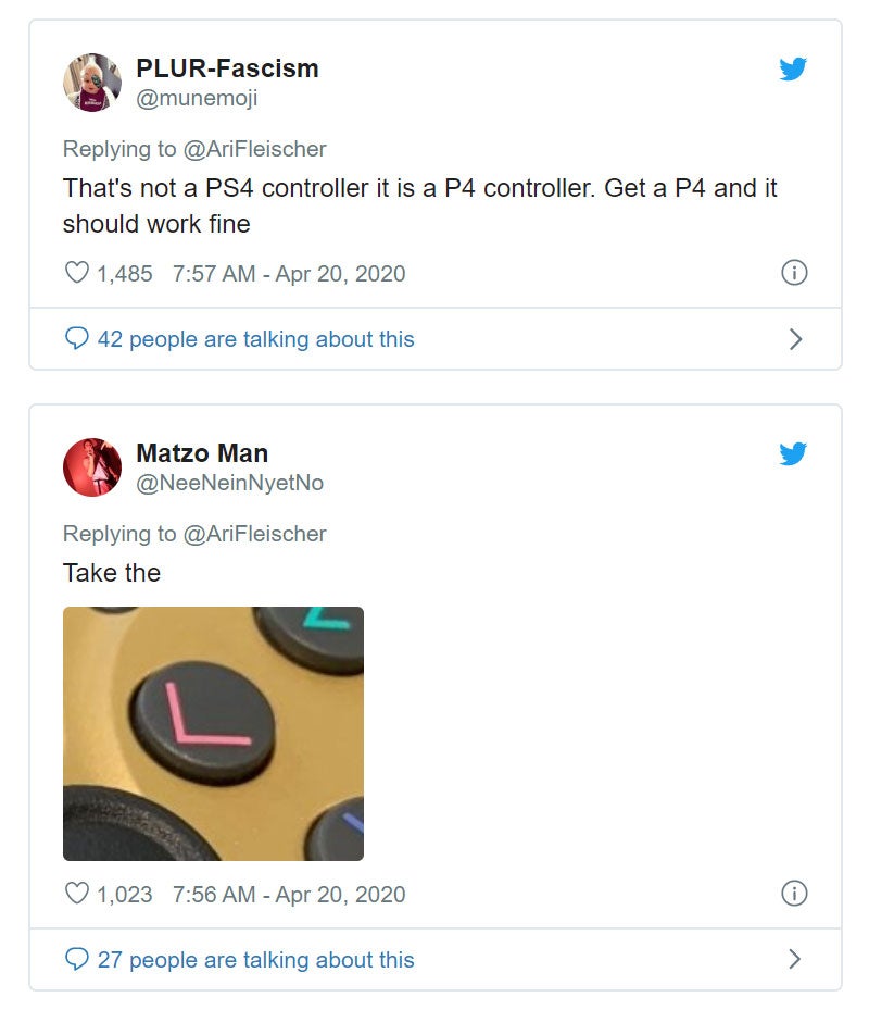 With all that’s going on in the world, there are a lot of things to get upset about right now! Blaming China because you got suckered into buying a bootleg PS4 controller on Amazon is maybe not one of them, though, especially if you’re the former White House press secretary for the Bush administration, Ari Fleischer.