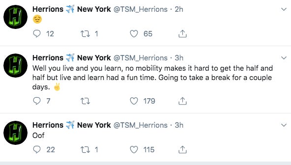 “Oof,” Herrions tweeted, following with “Well you live and learn.” An hour later, however, he tweeted a sad emoji.