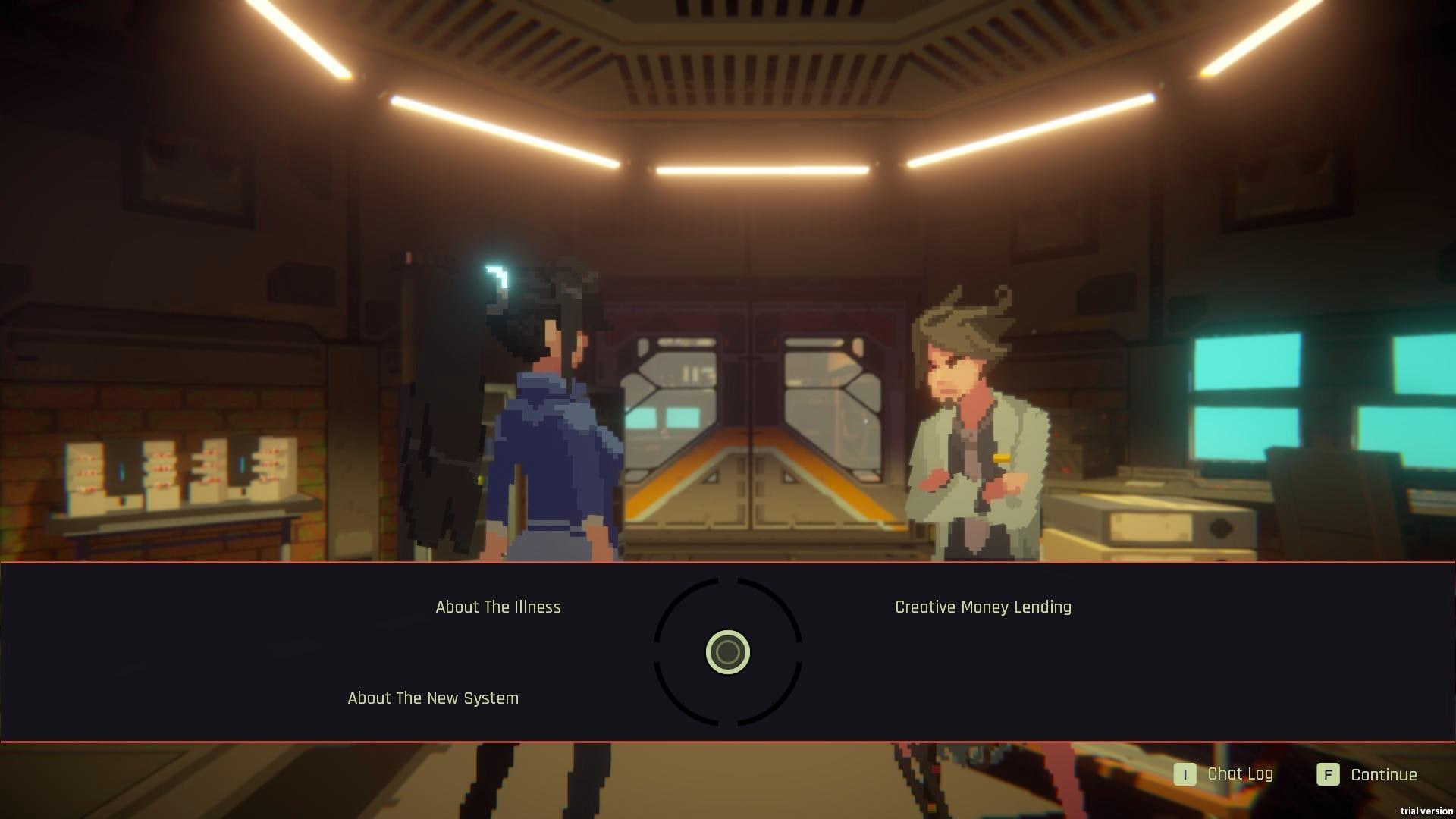 The demo follows Ann as she visits Alan Doyle, her cybernetics doctor, to discover who has been hacking her virtual assistant. Naturally, the good doctor wants to run some tests through combat simulations, and Ann obliges. In what I can only describe as a cyberpunk magical girl transformation, Ann dons her combat suit and dives into the simulation like Neo in The Matrix. A+ for style points.