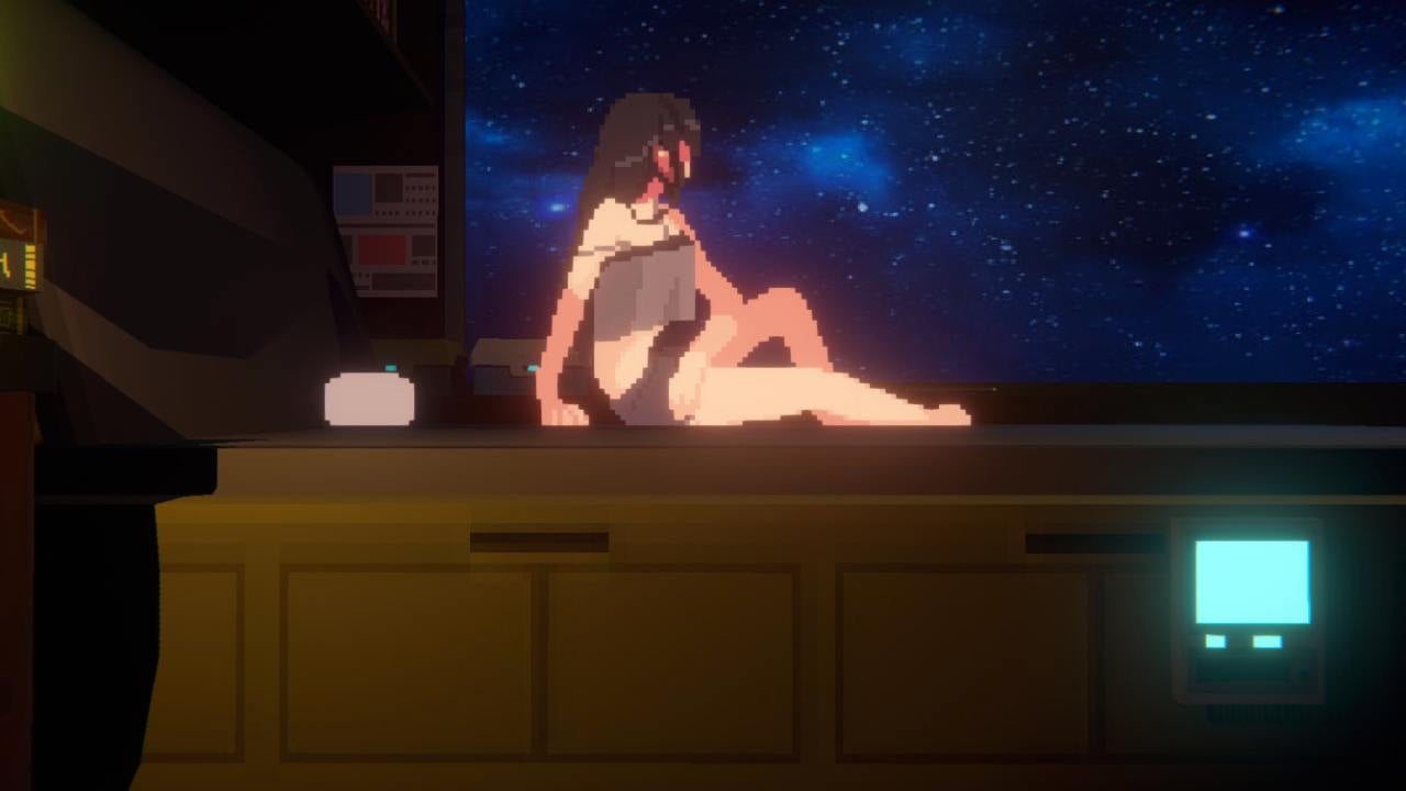 Designed by ThinkingStars, ANNO: Mutationem is an action-adventure game in which you play as Ann Flores, a “highly-skilled combat-trained lone wolf,” as she faces off against mega-corporations in pursuit of her missing brother. If her description reminds you of Ghost in the Shell’s Motoko Kusanagi, well, you’re not off-base. Right off the bat, ANNO’s aesthetic recalls the iconic cyberpunk stories that came before it like Ghost in the Shell, The Matrix, and Blade Runner. In the demo, Anno even wakes up from bed and opens her blinds just like GITS’ Major Kusanagi, wears a similar skin-tight combat suit, and has a scripted scene where she looks out at the city’s skyline, like a pixel art version of Rick Deckard looking over Blade Runner’s dystopian Los Angeles. ANNO’s obvious inspirations don’t dip into parody though; instead they provide a familiar foundation from which the game jumps off to tell its own story.