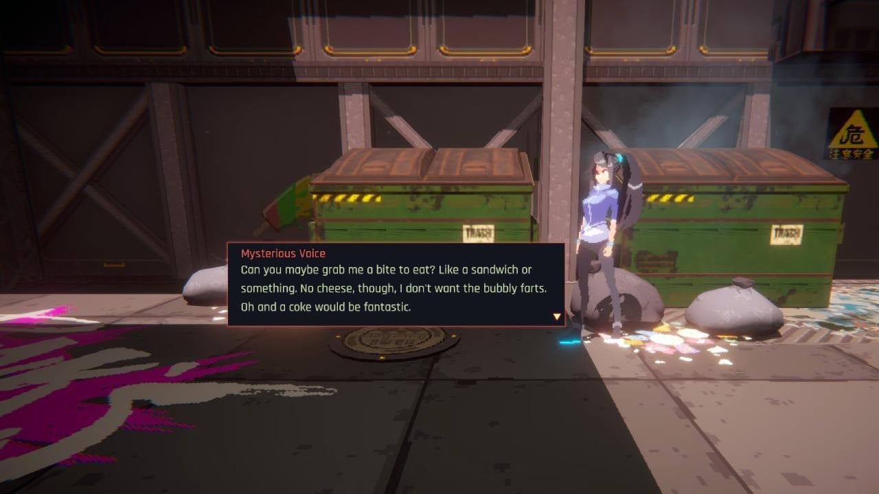 My efforts revealed additional lore, more characters to interact with, and weapon upgrades I’d missed, though the demo locks you out of gaining enough credits to buy them, and, tragically, of feeding the mysterious person in the sewers who is worried about their “bubbly farts.”