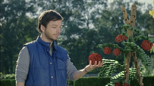 The game uses a unique style, presenting 2D retro-style graphics in a 3D environment using voxels