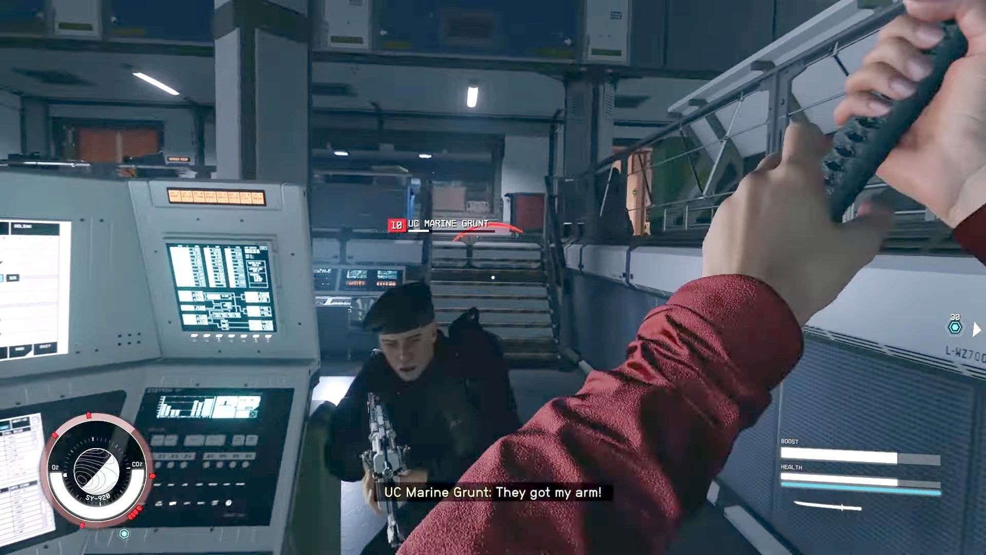 As in many other vertical scrolling shooters (including Namco’s own Xevious), the player controls a ship, facing the top of the screen, that can move freely while the background scrolls down, bringing enemies in to view; the player may destroy enemies for points. The game uses two buttons – one is used to make the ship fire circular lasers, while the other is used to cycle through its four firing patterns. The red pattern is two lasers in a spiral pattern, while the blue one is one laser straight ahead and one behind, the yellow one is one laser straight ahead, one left, and one right and the green one is two lasers diagonally forward (one to the left and one to the right), and one straight behind; by holding down the button, the ship fires more powerful, spherical lasers.