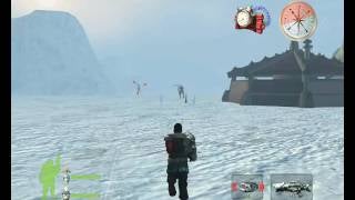 In Jaws: Unleashed, the player assumes the role as the large shark Jaws. The shark first enters the island from the southern end and the player finds itself in a cove. The cove has tutorials to allow the player to become familiar with the controls, such as the ones for moving the shark and attacking other creatures. The shark has a menu for upgrades as well. These can be accessed from either the main menu or the pause menu. Upgrade points are earned by causing destruction around Amity Island (in levels and in free-roam mode), completing levels, and/or collecting bonus items, the most frequently found of which being treasure chests.