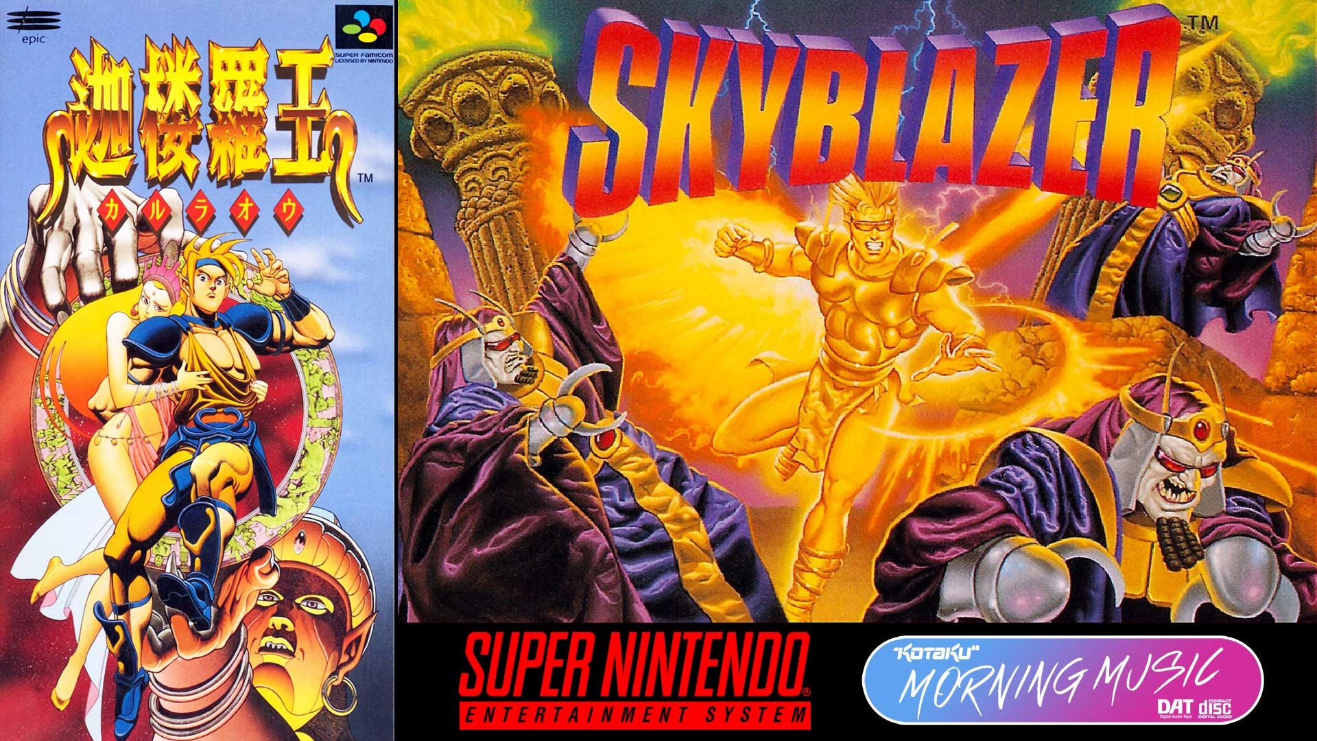 Arianna, a young sorceress, has been kidnapped by Ashura. Sky has pledged his life to rescuing her. Sky must venture through many colorful stages and nice background effects. Skyblazer is a blend of side-scrolling fighting with magical skills. Locating potions to recover energy and gaining magic points to thrash the enemies becomes a major part of the gameplay. Sky can also stick to and climb vertically up walls.