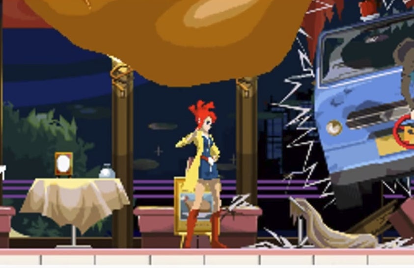 There’s a lot of super complicated deaths in the game, whether it’s Detective Lynne getting crushed by a massive chicken after a police officer crashes into the restaurant when the bug he’s listening to goes haywire, or the minister of justice dying from a heart attack because he gets a threatening phone call about his daughter but can’t reach his medication in time. Fortunately, Sissel can rewind time to four minutes before someone’s death, at which point he can watch what happened, repeat, and try to avert their fate. Thought bubbles give clues as to what he should do next and the game is generous with its continues as Sissel can repeat a sequence as many times as he wants. He also has the ability to jump to different areas by tracing phone calls.