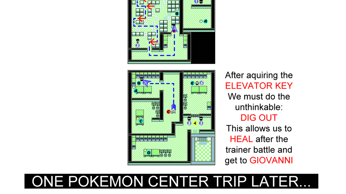 It's not just a blind, random will to persevere, however. It helps that PokĆ©mon is an old game, and anyone can look up what is obstacle is next, as well as look up the best way to do it. Can you imagine how much harder everything would be if nobody knew what to do next? You might also notice that the Google doc everyone is using always highlights a specific, overall goalāas of this writing it's "Defeat Giovanni in Rocket Hideout." If you click the goal, it'll take you to a game plan of sorts: