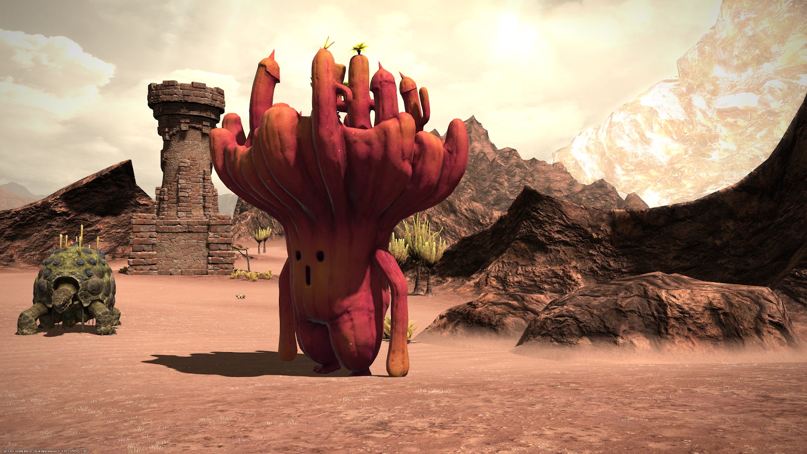 Cactuar are called Sabotenders in Final Fantasy XIV, using the Japanese name to differentiate them from the endless parade of cactus-shaped creatures and summons that have appeared since the creatures debuted in Final Fantasy VI. Garden (rock garden, I suppose) variety Sabotenders are a common sight on the MMO’s continent of Eorzea. Gigantenders are native to the Shadowbringers’ expansion’s land of The First and are adorable enough that I just want to sit in The Fields of Amber and watch them nearly topple all day long.