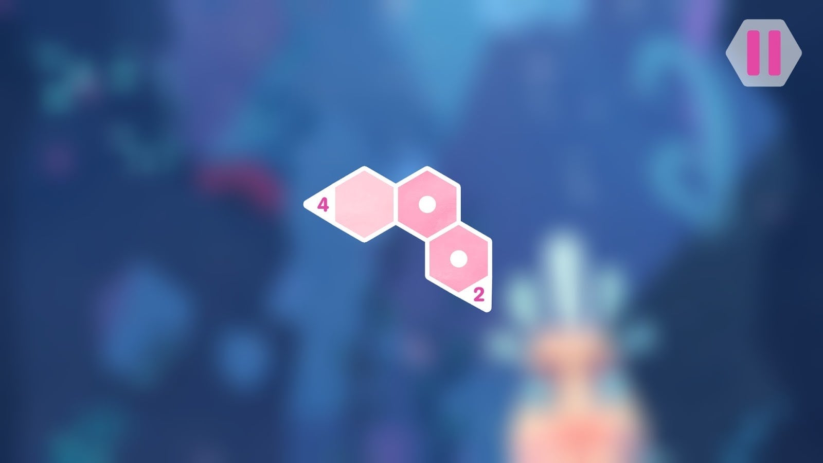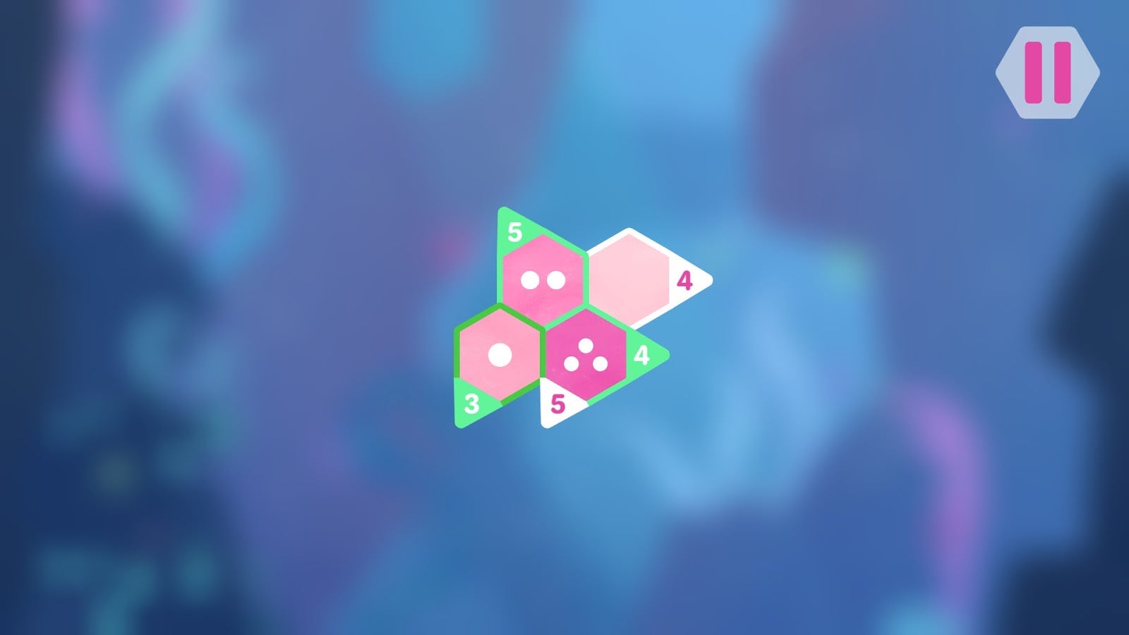 Each of the game’s more than 100 levels features one or more blank hexagonal spaces. All players have to do is fill in those spaces with one, two or three dots, in such a way that the sum of the dots jibes with the numbers on the outside of the hexagons. Here’s the game’s second level, which illustrates the concept nicely.