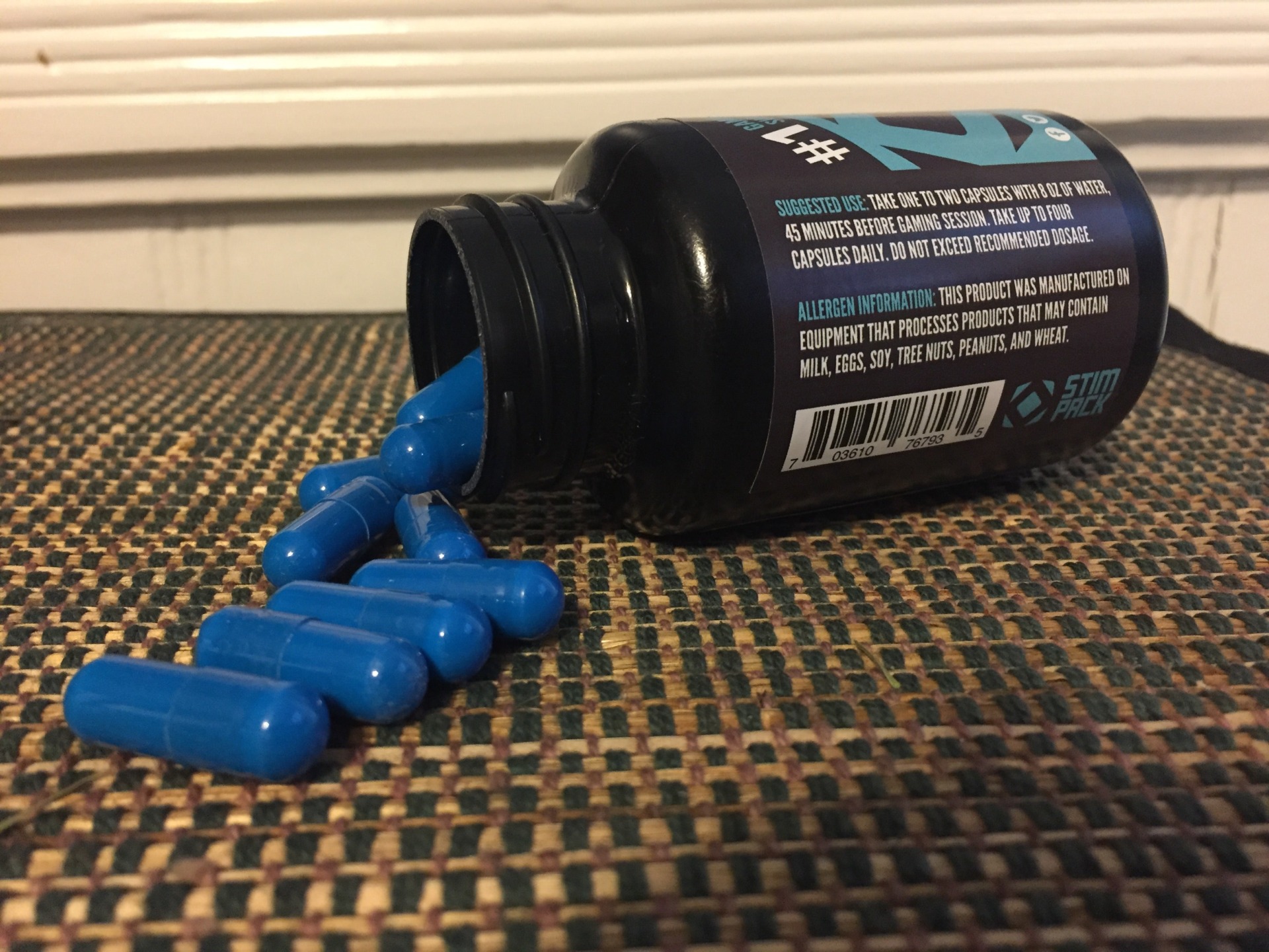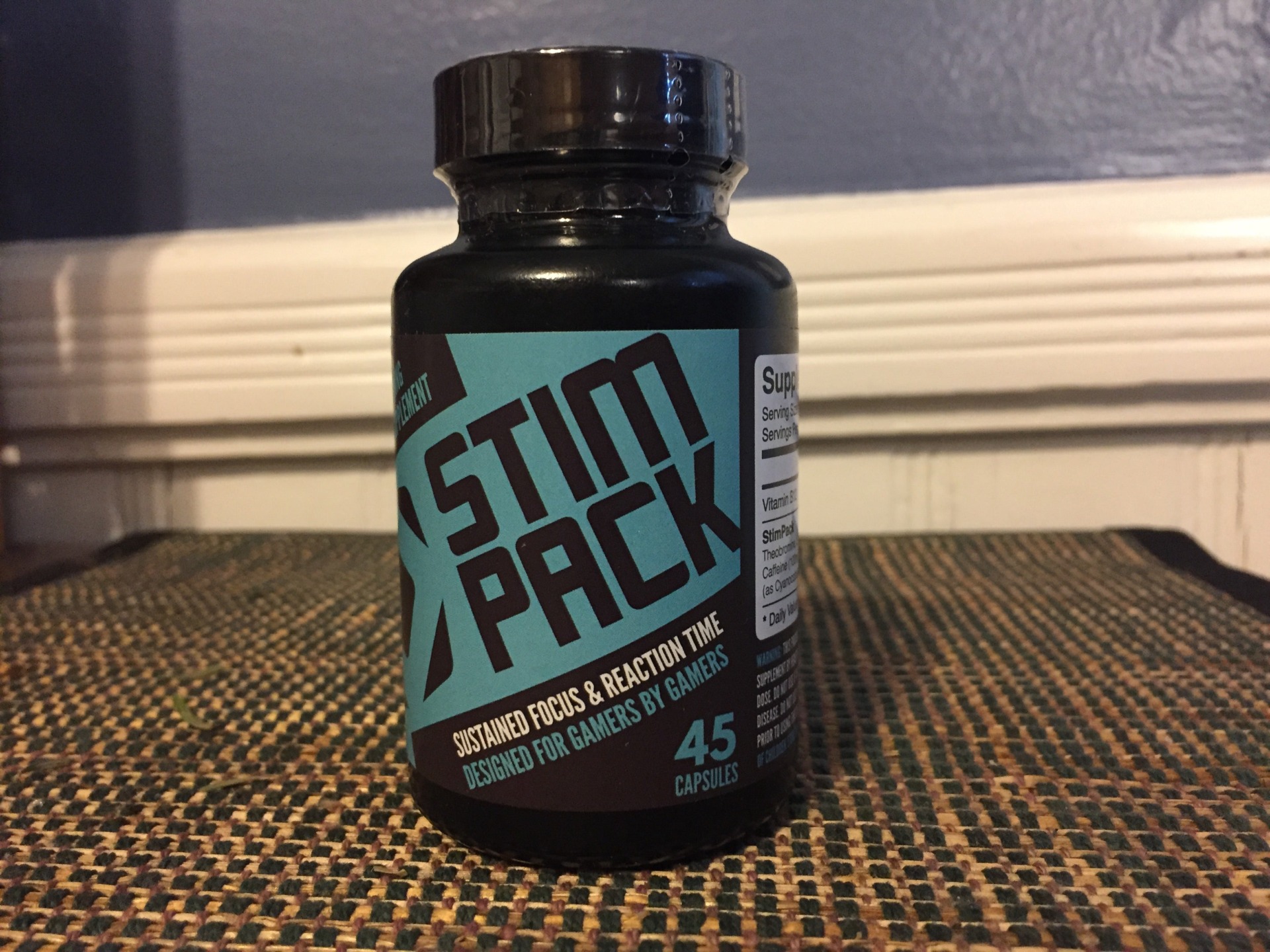 Unlike Ambrotose Complex, Stimpack was blessedly easy to obtain, and it has multiple active ingredients that I actually recognize even without resorting to Google. 45 capsules cost me $34.99. The bottle boasts that it’s the “Number One Gaming Supplement,” and the instructions tell the user to “Take one to two capsules with 8 oz of water, 45 minutes before gaming session. Take up to four capsules daily. Do not exceed recommended dosage.”
