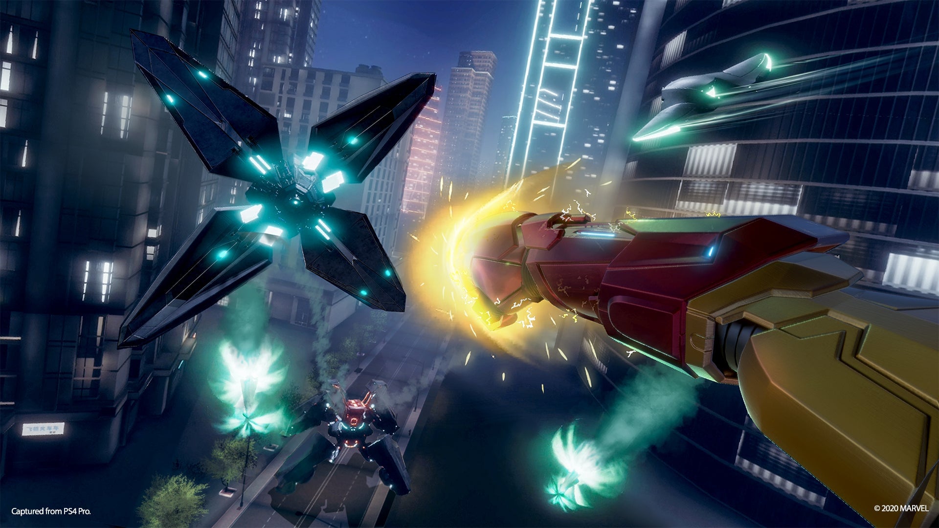 Initially, I was impressed. It’s a bit gimmicky, but actually using the PS Motion controllers as Tony’s hand jets makes this feel unlike any other VR flying game I’ve played. To fly forward, you angle your hands behind your back. To stop, you can throw your hands in front of you, just like Iron Man does in the movies, and stop on a dime. It feels good. Turning is a bit less intuitive, as it is set to buttons on either controller, but I got used to it quickly and within a few minutes I was flying around like a pro. This is where I want to warn you that you need to have a strong VR stomach to play Iron Man VR. Whipping about at high speeds, while moving your head to look around— starting and stopping quickly—might cause some to feel motion sick. There are comfort settings you can turn on, like a setting that darkens the screen when you spin around fast, but this is still a fairly advanced VR game. I played with all of the comfort settings off and felt fine, but for less experienced or more sensitive VR players, be careful.