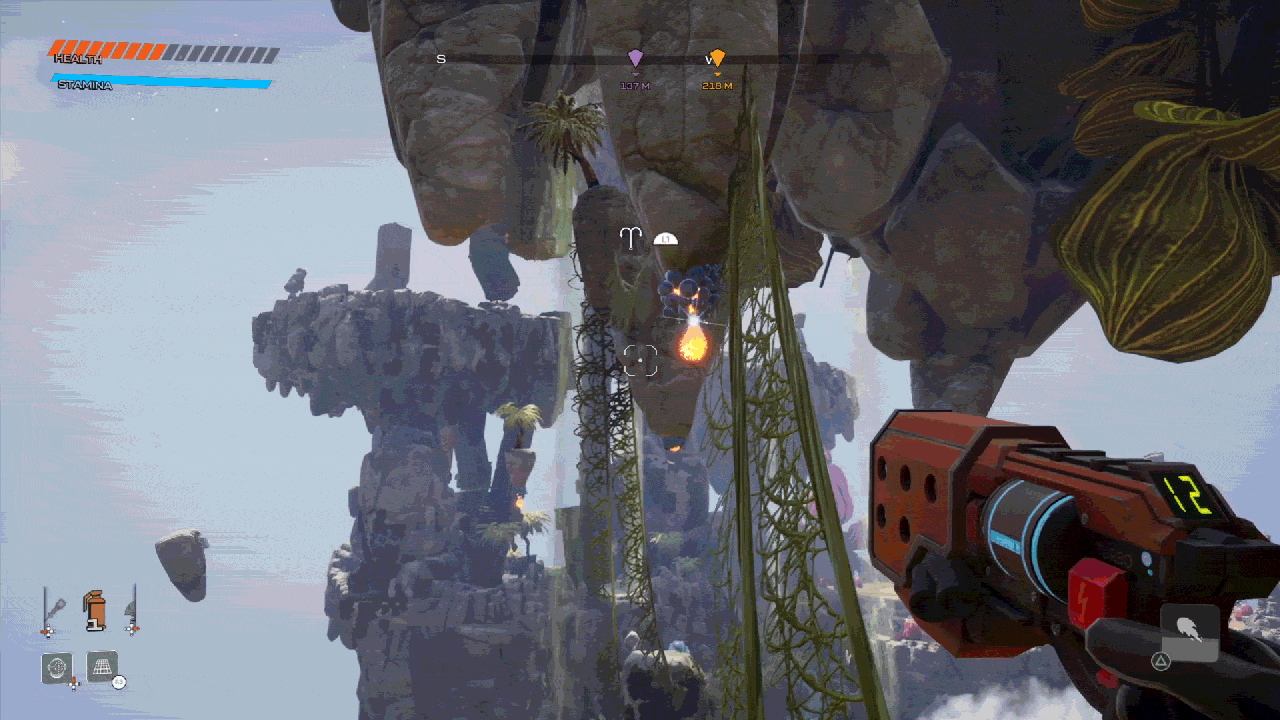 I enjoyed this game the most when I was exploring its gorgeous goo-filled world. But not at first. The starting hours are all about getting the ability to double jump and grapple. So you start by wandering around, seeing all these cool things just out of your reach. Then you get a jetpack and a plasma grapple hook and suddenly it gets so much better. You can swing around like Spider-Man. With some practice and more upgrades, I was able to move around large portions of the planet in seconds. It felt great.