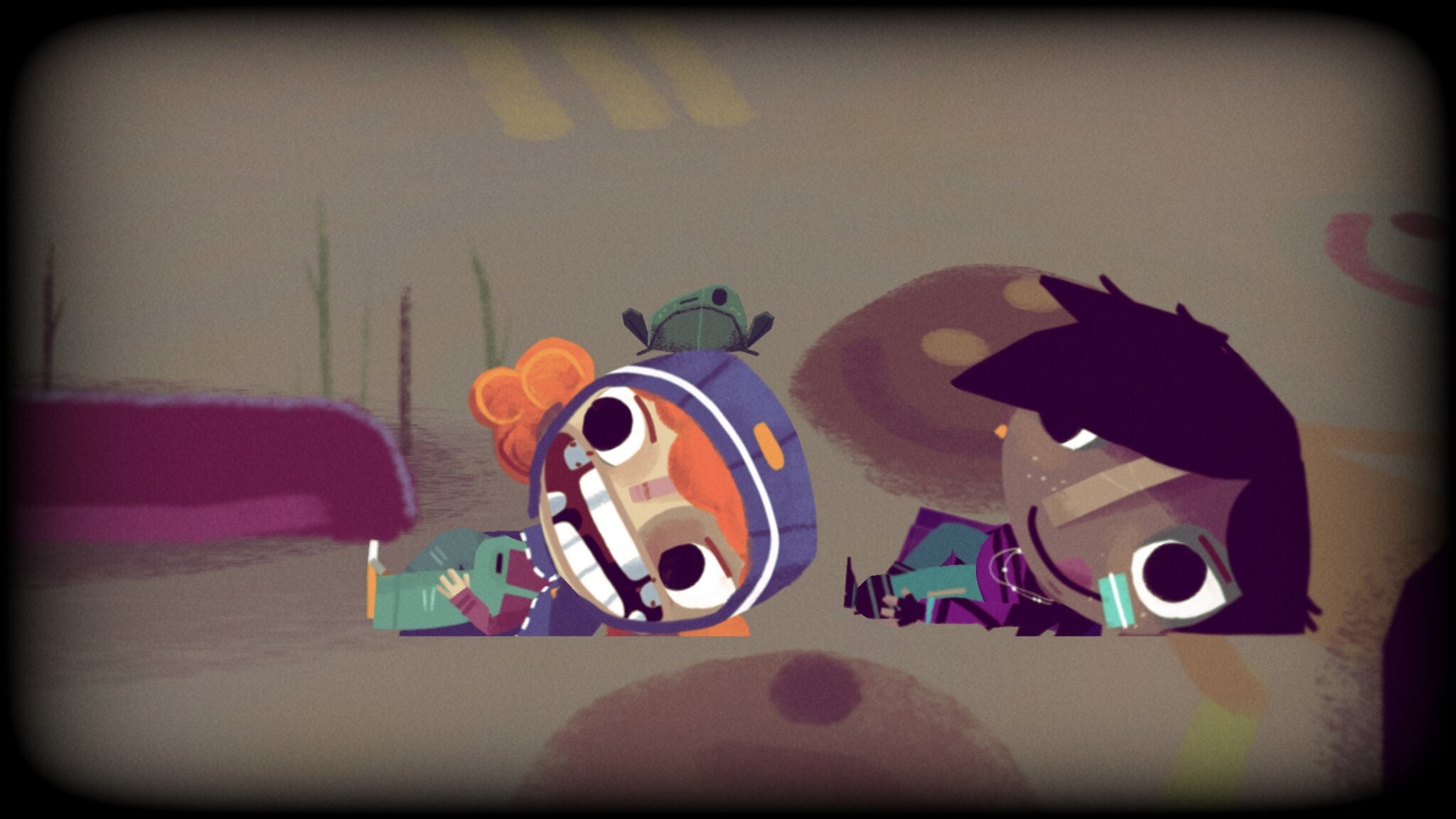 Demelza and Nessa have different abilities, which they gain through the course of the story; they often need to use these abilities in tandem in order to progress. Demelza can splash and stomp in puddles, or on moving foes that pop up. Later, she finds a video game glove that lets her warp over obstacles. Nessa can throw frisbees and, later, use a boombox to repel fog and enemies.