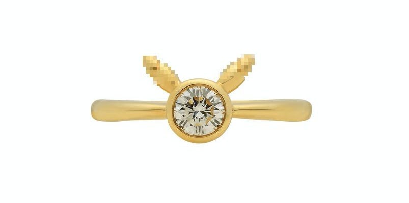 The Pokémon Company is once again teaming up with Tokyo jeweler Ginza Tanaka for a Pocket Monster-themed engagement ring. The center is a diamond, and the two things sticking out are supposed to be, um? Dicks? They look like dicks. But, they are not dicks; they’re supposed to be Pikachu ears. Available via Pokémon Center…